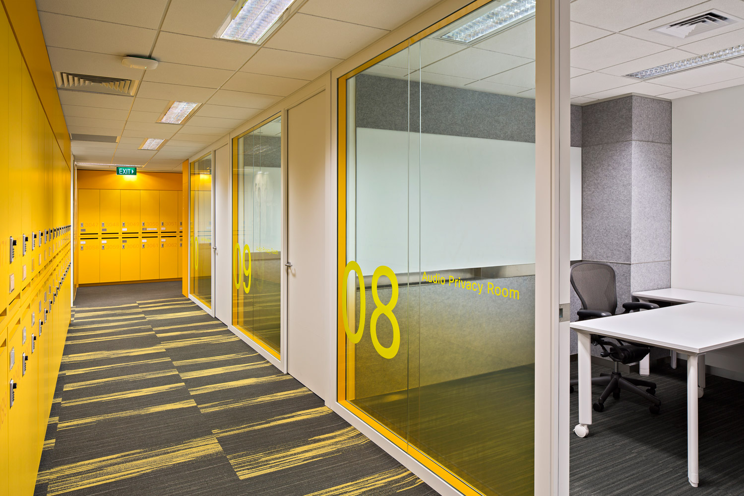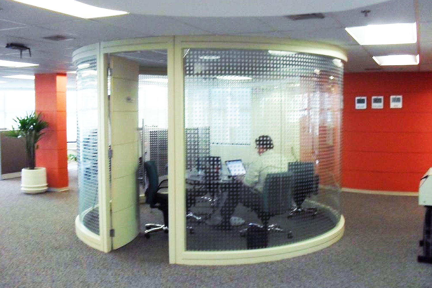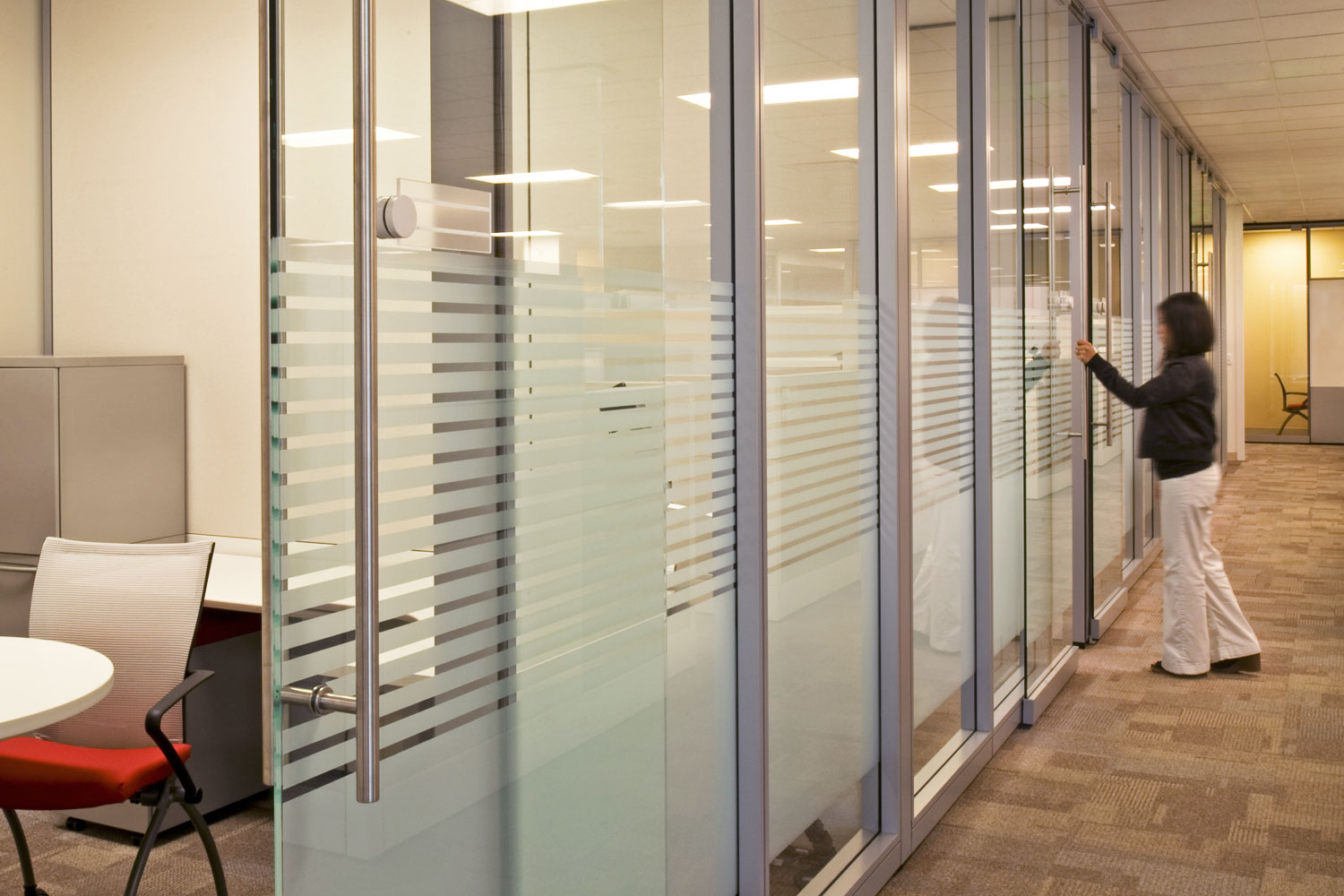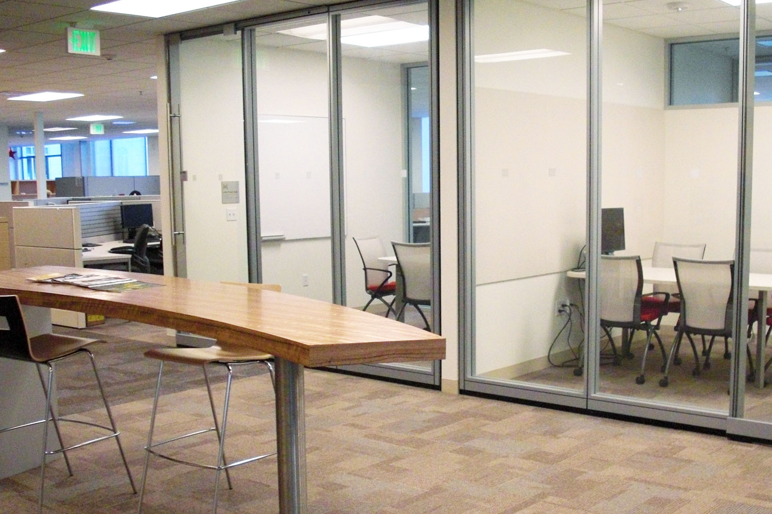 Audio privacy rooms (APRs) are nonbookable, enclosed collaboration spaces that support informal meetings between team members, conference calls, confidential and personal conversations and concentrated group work. They are located in all neighborhoods, and glazed walls provide visual cues to availability.