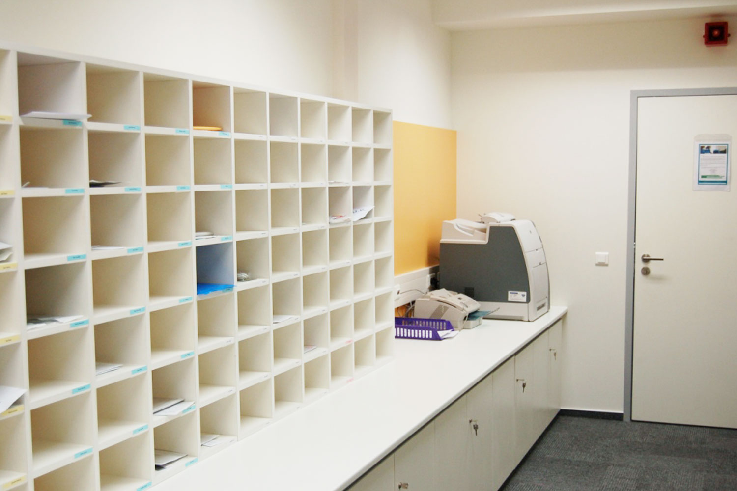 The post office provides mail distribution and collection, as well as office services and supplies. It is located near high traffic areas for easy access by all clients. The methods of mail delivery and office supply service vary based on site size.